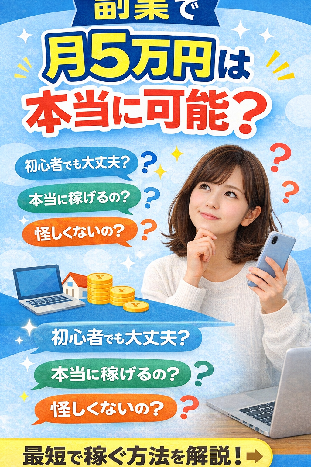 【本当?】副業で月5万円は誰でも可能?初心者が最短で稼ぐ方法を解説